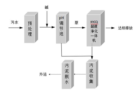 預(yù)處理:首先對(duì)污水進(jìn)行預(yù)處理,中和污水中部分酸,減少后續(xù)處理設(shè)備的負(fù)荷、同時(shí)減少對(duì)后續(xù)設(shè)備的腐蝕作用。