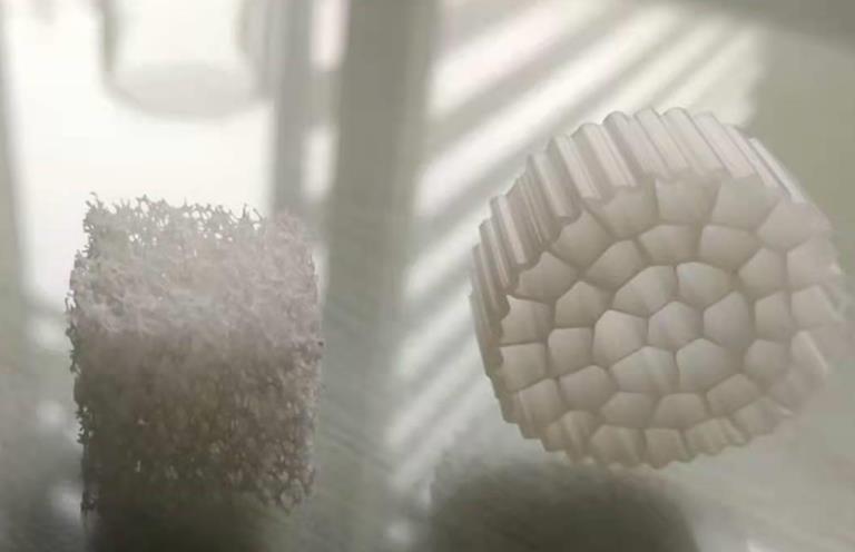 微生物賴以棲息的新型載體研制開發(fā)是移動生物膜法處理廢水的關鍵技術之一,其性能直接影響著污水的處理效果和投資費用。科研工作者以改進填料為突破口,不斷推動移動生物膜法的發(fā)展。目前的懸浮填料大多是由聚乙烯、聚丙烯及其改性材料、聚氨酯泡沫體等制成的,比重接近于水,長了生物膜以后,在正常的曝氣強度下極易達到全池流化翻動。懸浮填料的形狀通常為球狀、立方體、圓筒狀或粒狀,一般認為球狀有良好的水力學特性,是最理想的形狀。但受到生產(chǎn)技術的限制,材料作成球狀很困難;而圓筒狀填料當其長徑比為1時接近于球狀,因此PE懸浮填料一般選擇圓筒狀。聚氨酯懸浮填料依靠切割工藝,因此聚氨酯海綿填料選擇正方體。一般來說,國內(nèi)使用的載體外形尺寸比國外的要大,這主要是受整個工藝和出水格柵的限制,特別是國內(nèi)進水復雜,預處理不到位,水質(zhì)水量波動大等因素影響。(下圖左邊為親水性聚氨酯懸浮填料,右邊為HDPE懸浮填料)