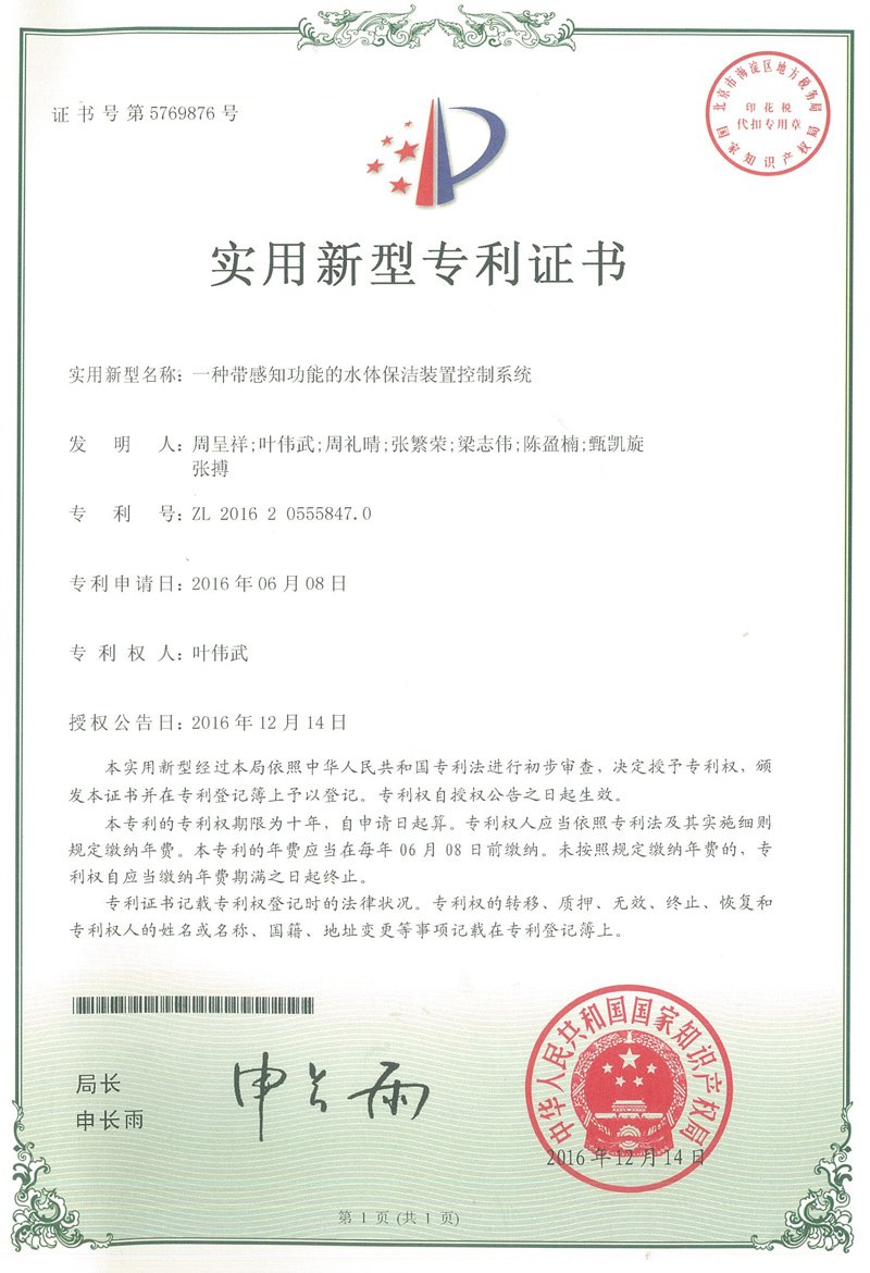 一種帶感知功能的水體保潔裝置控制系統(tǒng)