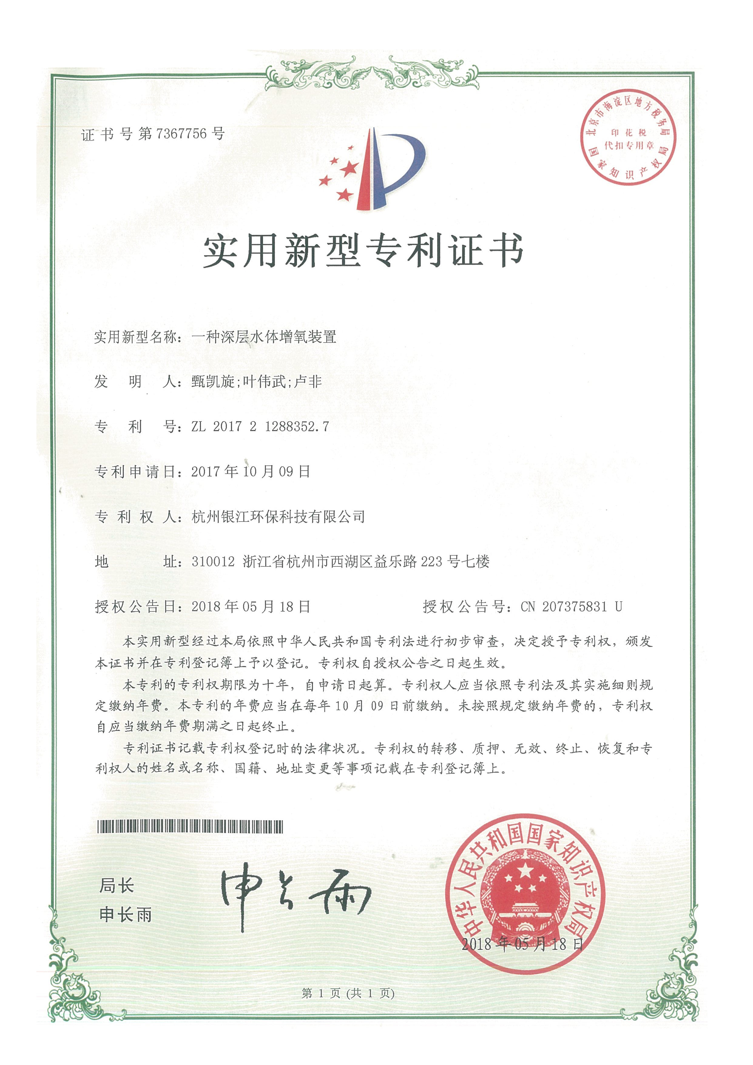 一種深層水體增氧裝置